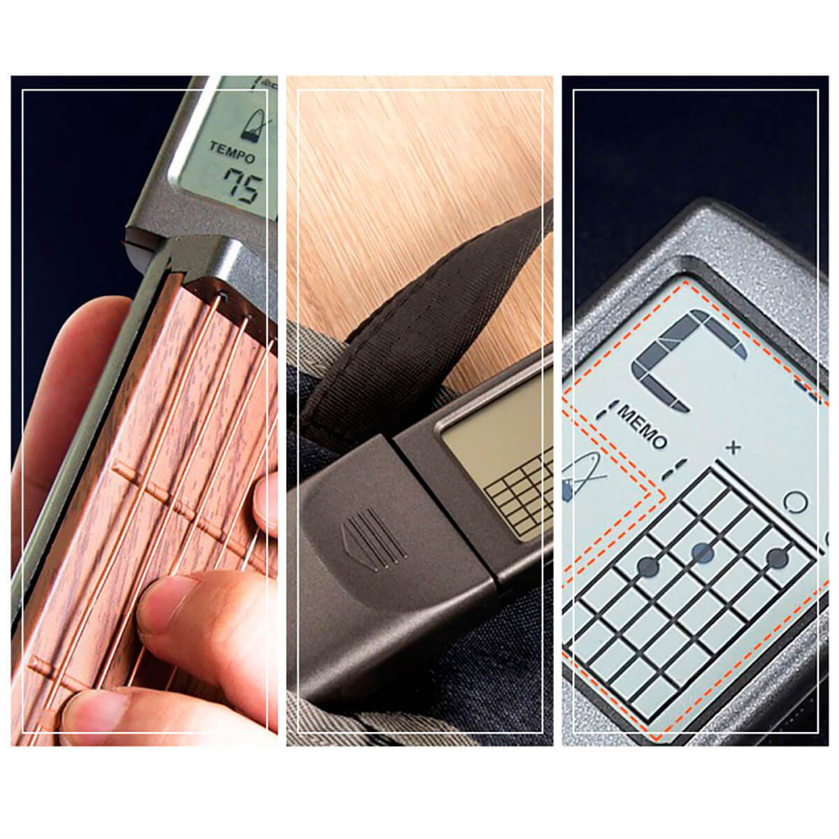 У вас есть трудности с запоминанием аккордов, медленное преобразование аккордов, трудности с удержанием, боли в руке, большие габариты гитары, которую неудобно носить с собой, и громкий гитарный звук, который беспокоит публику?