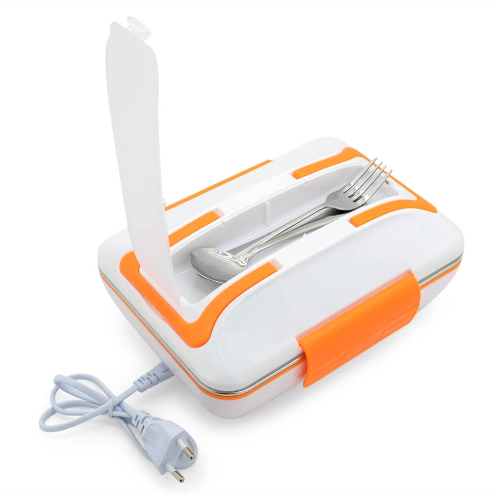 Герметичный контейнер для хранения готовой пищи. Контейнер выполнен из пищевой нержавеющей стали в наружном корпусе из пластика. Внутренняя емкость контейнера разделена на три отделения. Разогрев пищи в течение 20 минут. Для разогрева используется подключение к бортовой сети автомобиля или от сети 220 вольт. Контейнер предназначен для приема горячей пищи в дороге.
